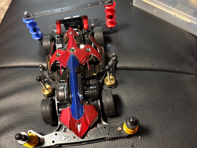 妖精)マッハフレームくんだそうですね、マイマスター。 わたくし) はい。ストッククラス作ってみたくなったからね。 よ) よろしいですけど、それでレースでるわけではないのでしょう? わ) まぁ、遊べるマシンを欲しがるのはミニ四駆レーサーのサガというか、ロマサガ?ロックブーケかわいいよね。 よ) ああ、イケブクロなおんなですか、しらないです。こんかいはリヤーウイングはつかいませんの? わ) 着けたいけど、これ以上ボディーキャッチが付け外ししにくくなると困る。 よ) そこですよー。なので、かへんリヤーウイングにいたしましょう! わ) 人の話を聞かない妖精さんは置いといて。 とりあえず完成したマッハフレームです。 ストッククラスにしたくてタイヤはハードローハイトにカーボン含有ホイール、サイドマスダンにリヤーカーボンマスダン(懐かしい錘で)、 ハイパーダッシュにキットギヤー比、ステーはリジット、リヤーローラーはダブルプラ。 軸受けなどはキット品なので、そんなにスゴいマシンではないと考えておりますが、ストッククラスの規制に疑問が。 例えばブレーキは「加工禁止」だとカット出来ないんですかね?え?使うなって言うのは無理筋でしょ? 「ブレーキは加工していい」のか、やっぱりダメなのか。 ダッシュモーター使えるならブレーキは必要だと思うのですけど。