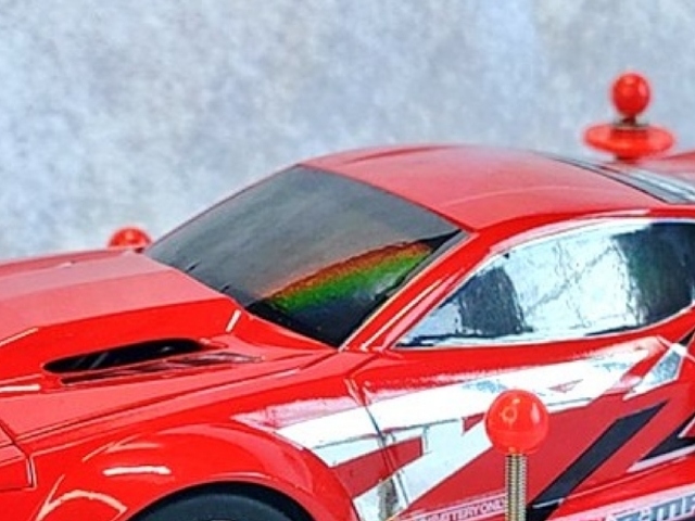 Xのコンデレ企画 [#ヨンクラ無加工コンデレ]に参加 無加工+レースマシン⇒GTアドバンス って事で、GTアドバンス仕様で。 無加工なので、ステッカーチューンかな?と思い、ヘッドライトはバロンビエントから、グリルはマッハビュレットから。 ウィンドウステッカーは、ポリカボディで余りがちなビニールステッカー。 そのままだと下地が透けるので、下にホログラムのカッティングシートを。 全体的には、アメ車でドリ車なイメージで。