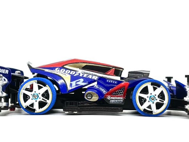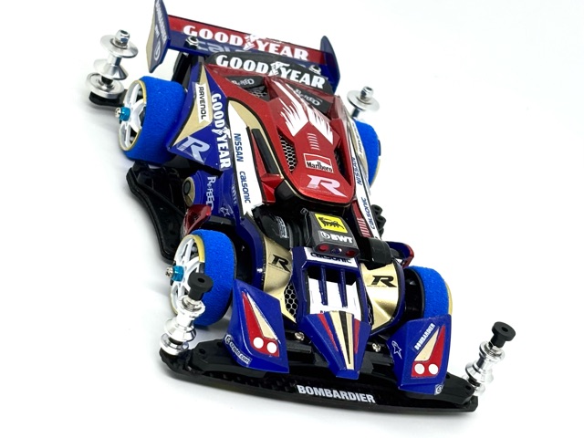 レイザーバックに サイクロンマグナムの魂を込めて エアロ風レーシングカースタイルに。 リアはダブルウイングにして 強力なダウンフォースを発生する イメージに。 構成パーツやカラーリングはレトロカラーにて 往年のレーシングカーや、ミニ四駆パーツを リスペクトしたデザインにしてみました。 タイヤはスポンジのペラタイヤです。 また、ボディ加工しローダウン印象も プラスしました! リアのフェンダーアーチと リアタイヤのRがいい具合に マッチさせる事が出来ました。 #レイザーバックな奴ら コンテスト応募作品です!^ - ^