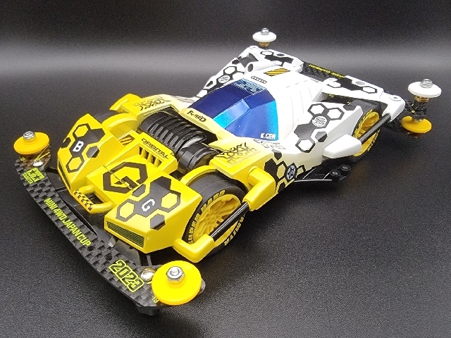 防御特化型ミニ四駆の次世代機。 装甲はすべて“HEXAコア構造体”で構成され、衝撃分散吸収・高剛性・軽量化を同時に実現したマシンという設定をイメージして製作しました。