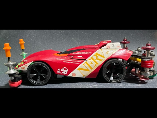 当時「何故弐号機が出ない!?」という思いで作ったマシンです。この子も作って10年にはなるので多少色がくすんでますね…またもや昔の杵柄で申し訳ありません(ーー;)