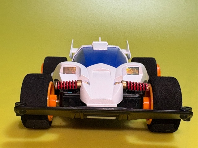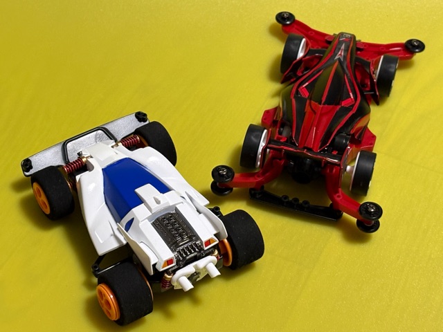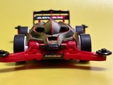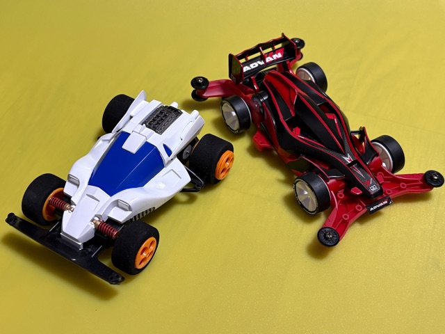 ヨンクラ!みんなの無加工コンデレの 企画用に作成。 次男も作りたいという事で、静岡で購入した エアロアバンテアドバン仕様のスモークボディにマスキングをして、伝統の赤と黒を使いましたが、定番ではなくオリジナルアドバンカラーで作成しました。 2人ともに作成期間約6日間塗装との戦いの末、 なんとか間に合いました。 私のマシンは、今回の企画の縛りが ボディーのみの塗装という事で、パッと 思いついたのが、2018年JCにて出展させて 頂きましたマシン「引き継がれる意志」のアンサーを作りたかったのでコレしかない! と思い作成しました。 キャノピーの青を全面塗装してから白を吹いて のせて行き、ショックアブソーバーの塗装を最後にしました。 ヘッドライトは、純正ステッカーだとなんか おもちゃっぽいなと思ったので、 超速ガイド2018のエンペラーの キラキラステッカーの余白部分を切り取り、 貼り付けて仕上げました。