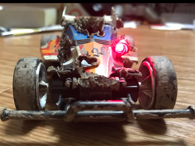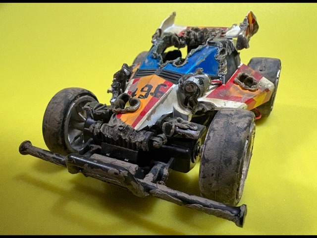 自分の記憶の中で当時1番衝撃的だったカーボンシャーシに落雷を受けた皇帝を再現しました。 ブラックスペシャルを綺麗に塗装してから泣きながら真夜中に加工していきました。