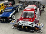 出光興産がまさかのトヨタにスポンサード。 無理あるか... ホンダeで作る予定でしたがヤリスボディで衝動的に作ってしまった。 グループAらしく派手なエアロは纏わず。 公式レースから日々のミニ四駆遊びに酷使するボディとして制作。 こだわりはちょっとかち上げたリアスポと1本ワイパー。ボディ提灯になっていてマスダンパーレスを補います。 公式戦ラストランは華麗にトルネード!残念。 ヤリスは造形が良くて眺めて楽しい。