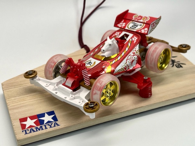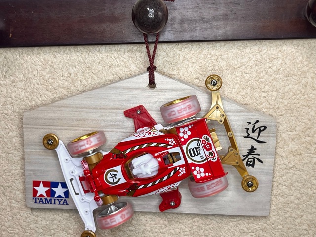 干支四駆「午」を壁掛けでも飾れるように絵馬風の台座を作成しました。 台座は百均で買ってきた板を切って手作りしています。 ボディは指定カラーで塗装後にパールクリアで仕上げています。 2026/1/5 #新春コンデレ2026 用に作成 絵馬四駆賞 受賞