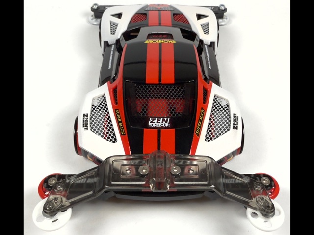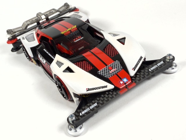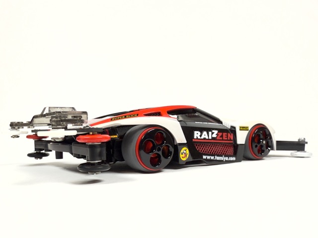 ライザンを大胆に前ちゃん風にカスタム! 前ちゃんの低重心と肉抜き軽量化を意識しつつ、前身・始祖とも言えるアストラルスターのカラーリングで纏めました。 ワンウェイホイールでツライチ・シャコタンはお気に入りのポイントです。