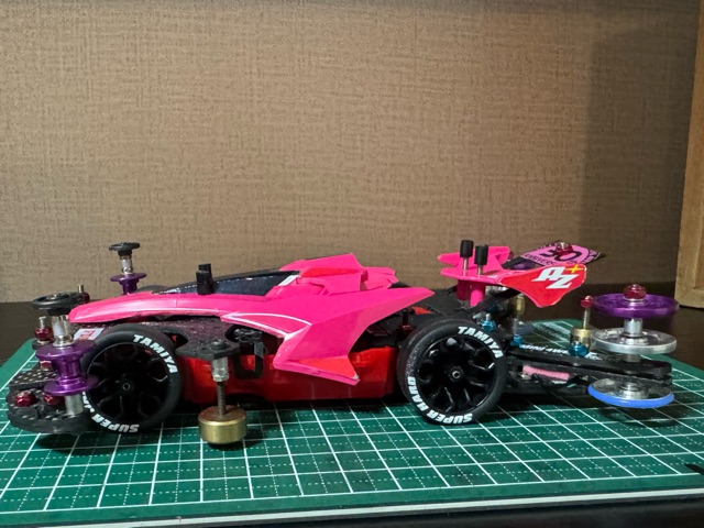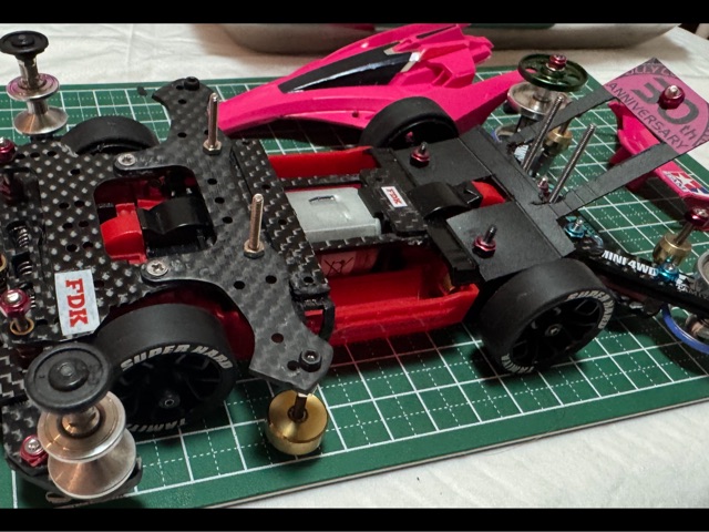 メインマシンのフレキを作り直し リアアンカー新規で作り直し ローラー見直し フレキは電動ノギスでブレなく作り変えました ボディもギリギリまで切り込んでます。