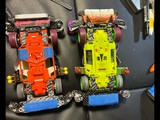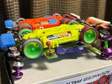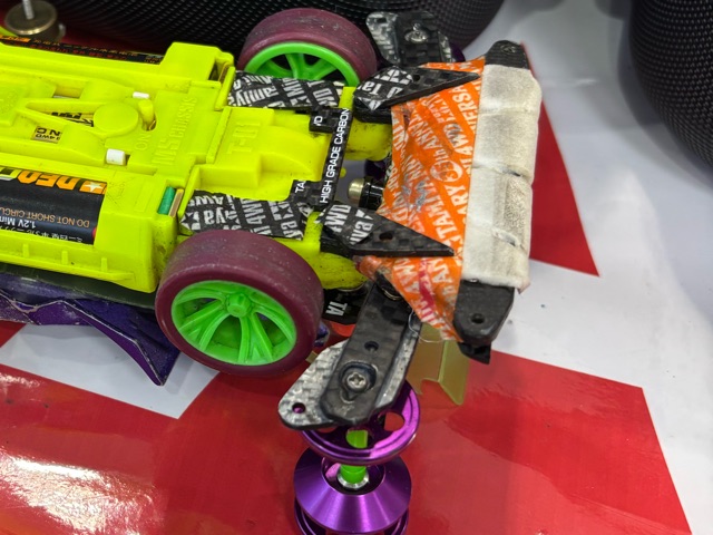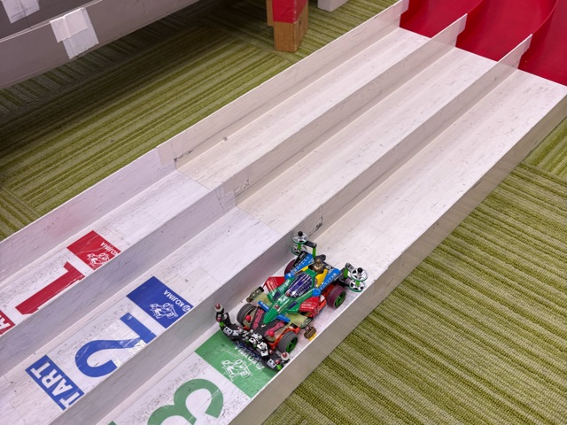 わたくし ) 頼んでおいたハンドルカバーが入荷したそうで、福岡市西区の老舗まで受け取りに行ったのさ。ついでにコジマではシェーバーをお買い上げ。仕方ないので、さらについでにテストを…。 妖精さん ) 説得力皆無なのではないでしょうか?平日に仕事のついでで構わないハンドルカバーを、どこで買っても構わないシェーバーの購入にかこつけてコジマでテストしたのですわよね? わ ) テストは本当についでだったのだけど。まぁ、走ってる君たちを見ていると、リヤブレーキが提灯のお釣りを打ち消していたのは収穫だよ。 だからリヤブレーキには接触痕が無かったんだねぇ。 よ ) それ、リヤブレーキを剥がしてまで確かめておられましたわね。お陰でダイナホークさんは痛そうにCOされていましたが。 わ ) あれは申し訳ないと思いながらも、技術的に検証をしたかったものだから。 よ ) さらにわたくしに2019載せ替えてまで検証されましたよね、コースと発泡の壁に挟まれた時には「あ、モーター死ぬかも」とか考えた次第ですわ。 わ ) それについても謝るけど。とりあえず、フロントブレーキは青で2mm、それが減速せずにリヤブレーキを白で2mm、ただし今ほどのlengthは必要無いことが理解できたので、今日も収穫多かったよ。 よ ) そういえば、今日はマッハフレームさんも走らせていらっしゃいましたけど、あちらは速いのに早々に片付けておられましたね。 わ ) うん、吹っ飛び過ぎて、なにから手を付けるかわからなくなったから、「やっぱりMSふたりがそれなりに形になってからだよなぁ( ̄д ̄;)みたいな。 よ ) なるほど。わたくしたちの成長が楽しみなのですね、安心いたしました。 わ ) それはそうだね。とりあえず今度はダイナホークさんのリヤーセクションを今のままの上下のみのワシントンから、君に倣って自在可動のアンカーにしてみたいのだけれど。 よ ) わたくしに、今以上に差をつけるダイナホークさんを作ると言うことですか? わ ) あ、そうなるのかな? よ ) ダイナホークさん、1番錆びてるノコギリをお借りしてもよろしいですか?え?あの野郎を叩っ斬ってまいりますので、当たれば破傷風になりそうなものを…。 ダ ) ………。(無言で裏の物置に走って行く。何か出してくる。油紙を入れ忘れたらし(文字数)
