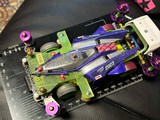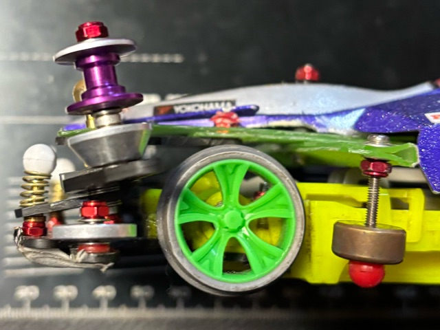 妖精さん ) 元旦早々にブチ上げておられたスーパーエックスですわね。存じておりますよ。 わたくし ) そうだね。スーパーエックス大径カーボンホイール付きハードタイヤで、グリスはなんとアンチウエアグリスを使って作ってみたんだけど。 よ ) 仮組のカーボンステーや、今後の方向性のようなものは気になりますが、このままイカれますの? わ ) そうだよね。まぁ、ストックじゃないから、カーボンステーも削るし、シャーシには補強もしてみようと考えているよ。ただ、モーターはライトダッシュ、ギヤ比は赤い4.2:1に固定すると思うけどね。 よ ) なるほど。それで、次の写真のダイナホークさんは何を? わ ) ローラーのスラストを強めてみたよ。角度は測っていないが、単純に1.5mmのスペーサーを入れてみた。通常の衝撃ではゼロスラストにはならないと思う。 よ ) そうですか。つまり、今度のグランプリにはわたしよりもダイナホークさんが有力だと? わ ) そうなるのかな。前日練習での観察をしてから決めようと考えているけどね。大丈夫、まだグランプリには出られる可能性があるよ。そもそも、出たいの? よ ) そうですわね。せっかくこの世に生を受けたのですから、レースという表舞台に立ってみたい。そのような想いが無いわけでは無いのですよ。マイマスター、マシンの持つかも知れない「想い」。それは、ただの一方通行では哀しいのです。わたくしたちは、ただのプラモデルかも知れませんが、ガンダム であれば「俺のモビルスーツが最高!」であり、スコープドッグならば「明日まで生き残る」でしょう。なれば、ミニ四駆としてのわたしは「さぁ!わたしたちのマスターがレースに出場なさいます。皆は盛り上げてまいりましょう!」と言ったところでしょうね。 わ ) …ありがとう。瞼の下側から何かが出てきそうだよ。ちなみに公式レースでは、一次勝っちゃうとマシンに触れないままで二次予選に流れ込むから、燃費のいいライトダッシュをダイナホークさんに搭載しようかと思っているんだけど。まぁ、トルクは減っても一組の電池で2回走ろうと思うなら、選択肢に入る気がするよ。 よ ) そうですね、ダイナホークさんはライトダッシュでもハイパーのわたしより速いという特異な特性をお持ちですし。 わ ) まぁ、全ては試してみて。かね。