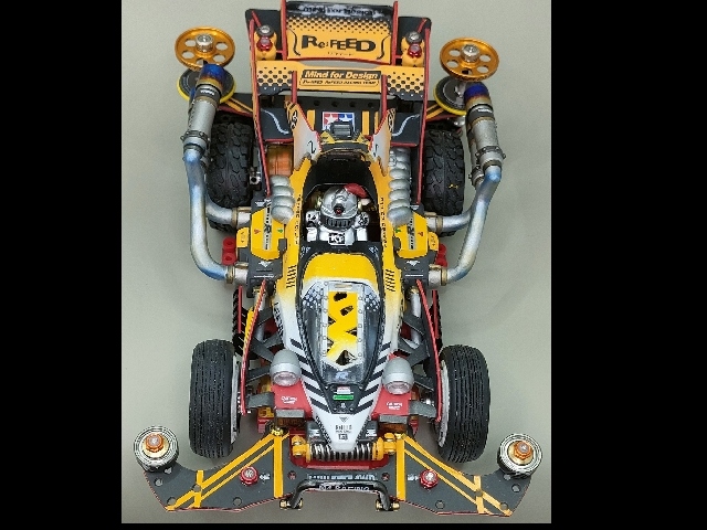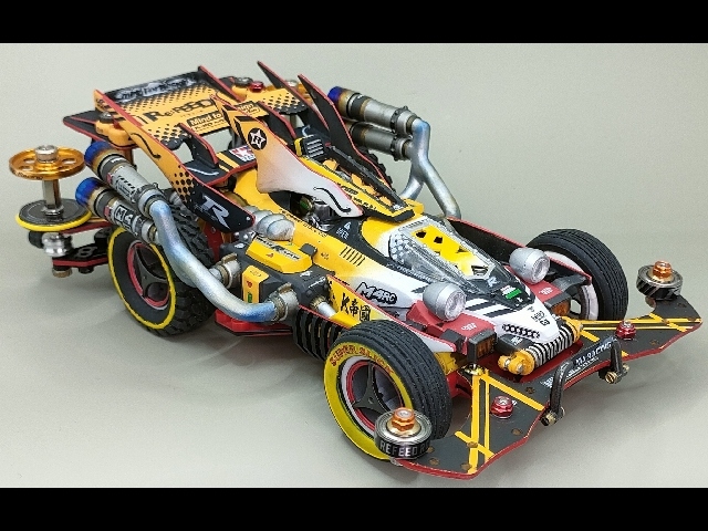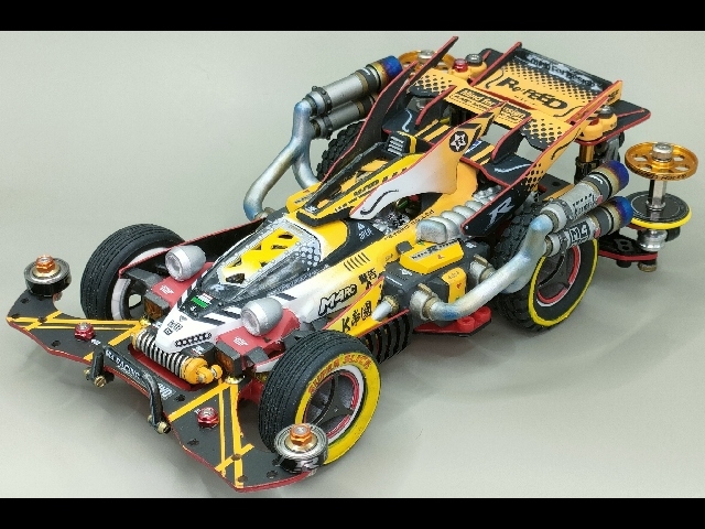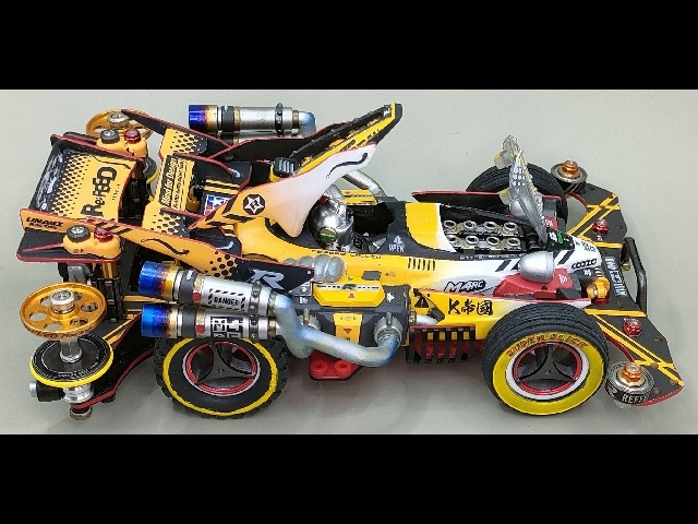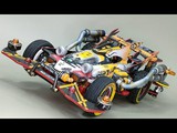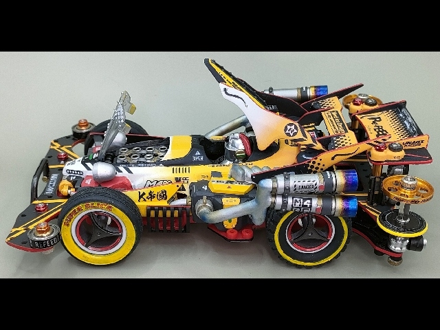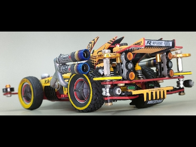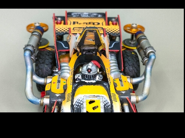 ボディのほぼ全てをクロススピアー01と02のパーツで構成し、 ドラゴンモチーフのバギーに仕上げました。 キャノピーと、エンジンカバーに開閉ギミックを加えています。