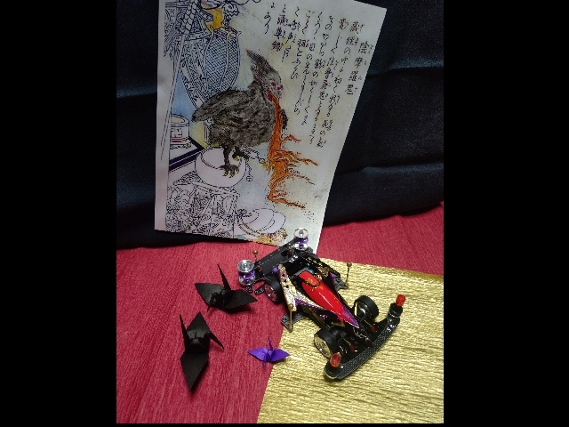 題材はその名のとおりで。 "姿は鶴のよう、体色が黒く、眼光は灯火" 今回の和柄はそれらにちなみに、鶴柄をさりげなく、鶴の蒔絵もスモーク色でうっすら上塗り。 "歌舞く、且つ渋く"もを心がけ製作させて頂きました🎌