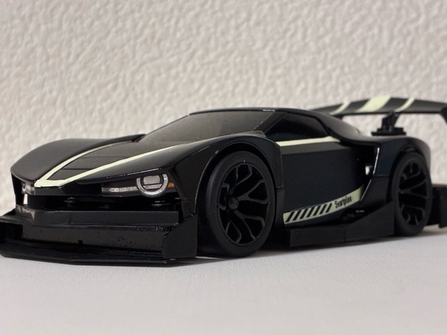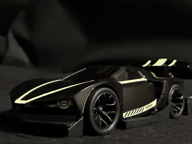 Svartpilen(スヴァルトピレン)とはスウェーデン語🇸🇪で「黒い矢」 北欧の高級スポーツカーをイメージして作りました。 ボディは無加工でバンパー等を追加。ボディは黒を3種類に塗り分け。差し色の蛍光は「雷」から稲妻の閃光を表現しました。 ライザンコンデレにエントリー。