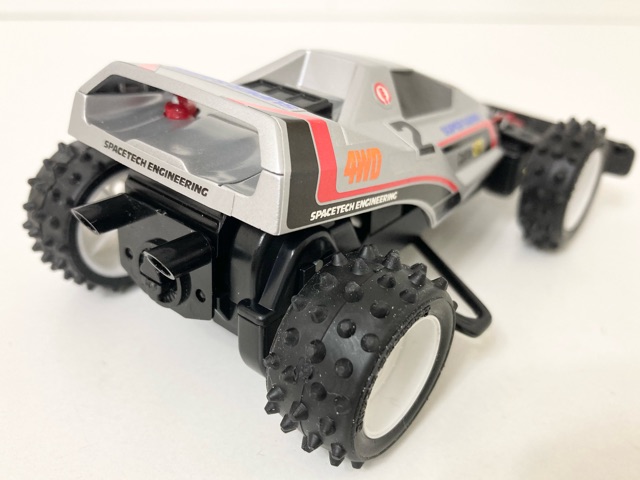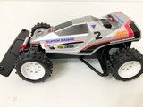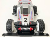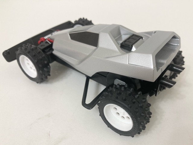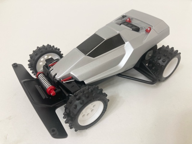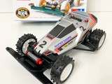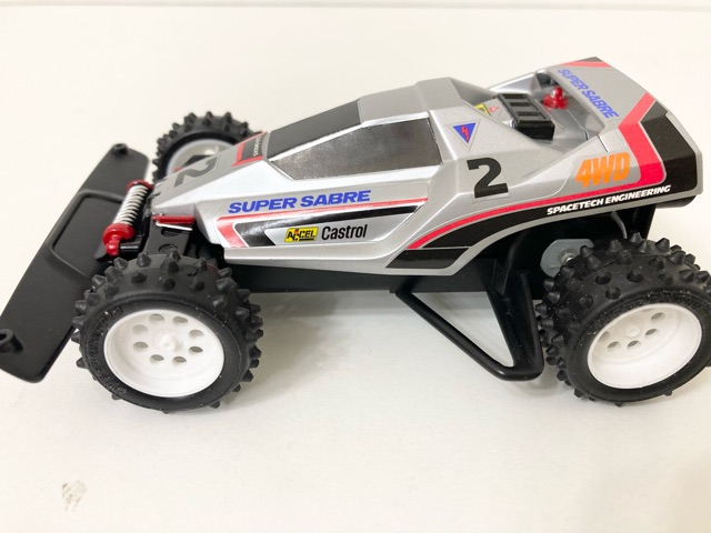 運良く入手できた当時モノのステッカーと、ミニ四駆ホークのボディでスーパーセイバーJr.のレプリカ製作に挑戦しました! キャノピーの再構築と、リヤウイング下のパーツの穴埋め。フロントサスアームのディテールは、よく似た形状のものを別のキットから移植。 前後ボディキャッチ部をそれぞれ2mmかさ上げし、前もって作っておいた「タイプ1っぽく見えるタイプ3シャーシ」にフィットさせました。 さらに、エンペラースペシャルキット付属のホイールに、EZシャーシ用スパイクタイヤを履かせて細部にこだわり当時のシルエットを再現。 塗装のクオリティはそれなりですが、あの頃の思い出が今、鮮やかに甦る!